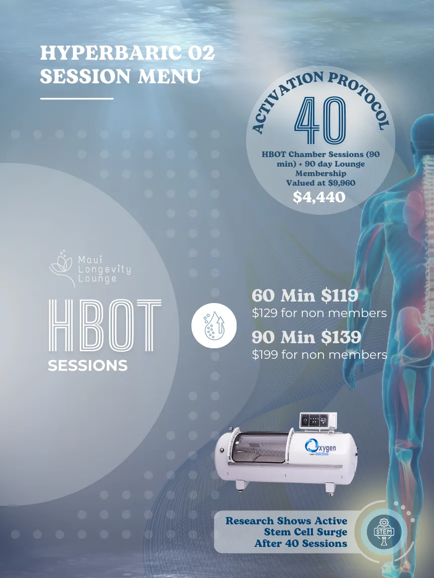 The high oxygen levels support wound healing, reduce inflammation, enhance brain function, and stimulate stem cell activity at a cellular level.